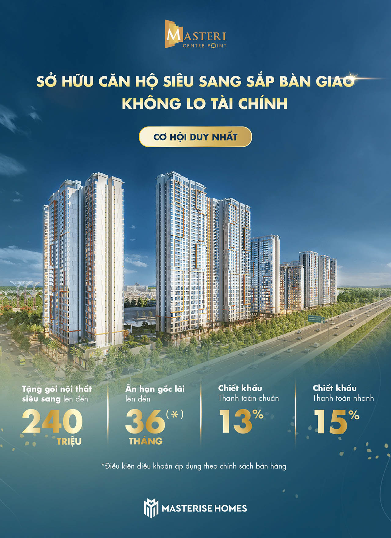 Sản phẩm chất lượng 5 sao – Vị trí tiềm năng – Giá bán & chính sách ưu đãi hấp dẫn mang đến nơi an cư tuyệt vời cùng giá trị tăng trưởng bền vững cho Masteri Centre Point.